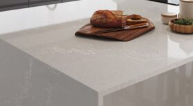 Alpine Mist finns nu även tillgänglig i Caesarstones nya mineralformula med låg kiselhalt för ökad säkerhet och hållbarhet, utan att kompromissa med den karakteristiska estetiken.