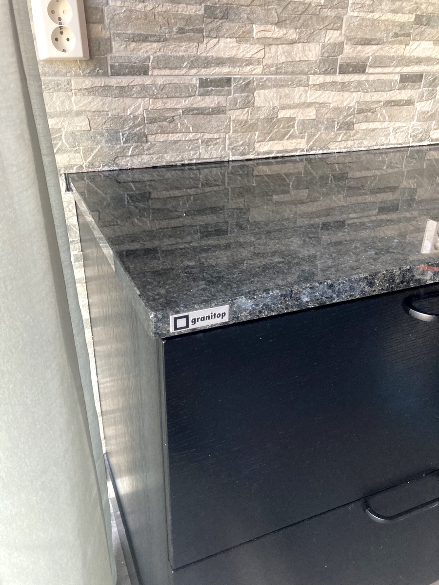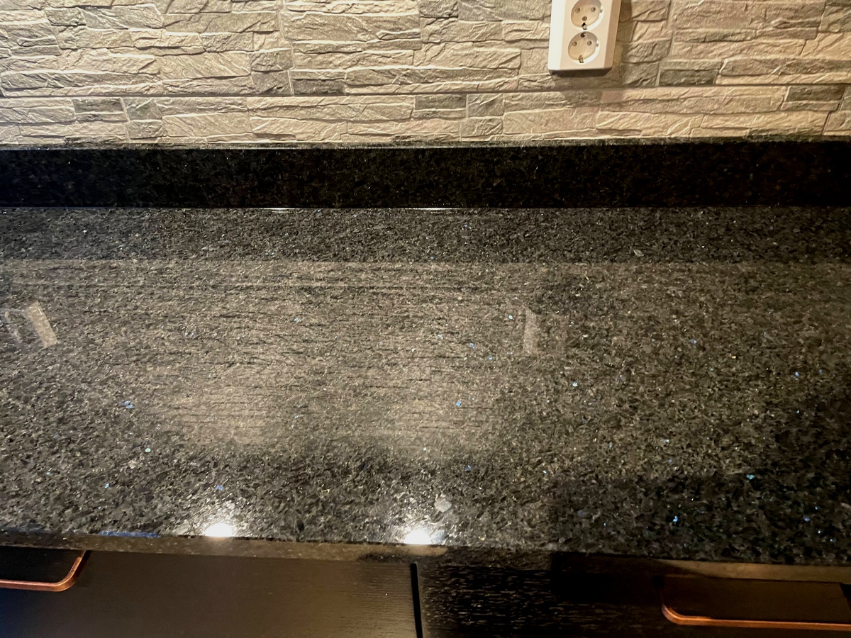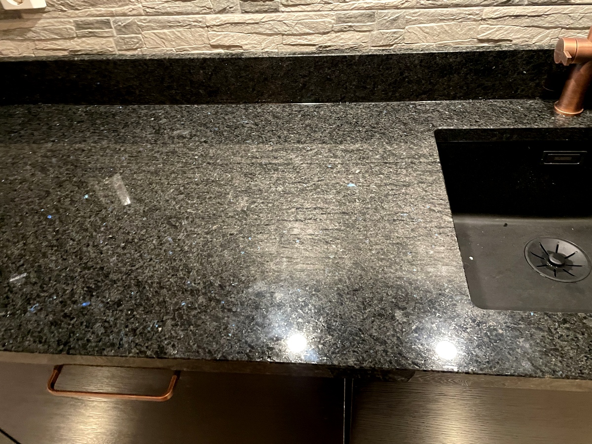 Blue In The Night är mörk, dock inte helsvart afrikansk granit med blått skimrande fläckar i mönsterbilden.