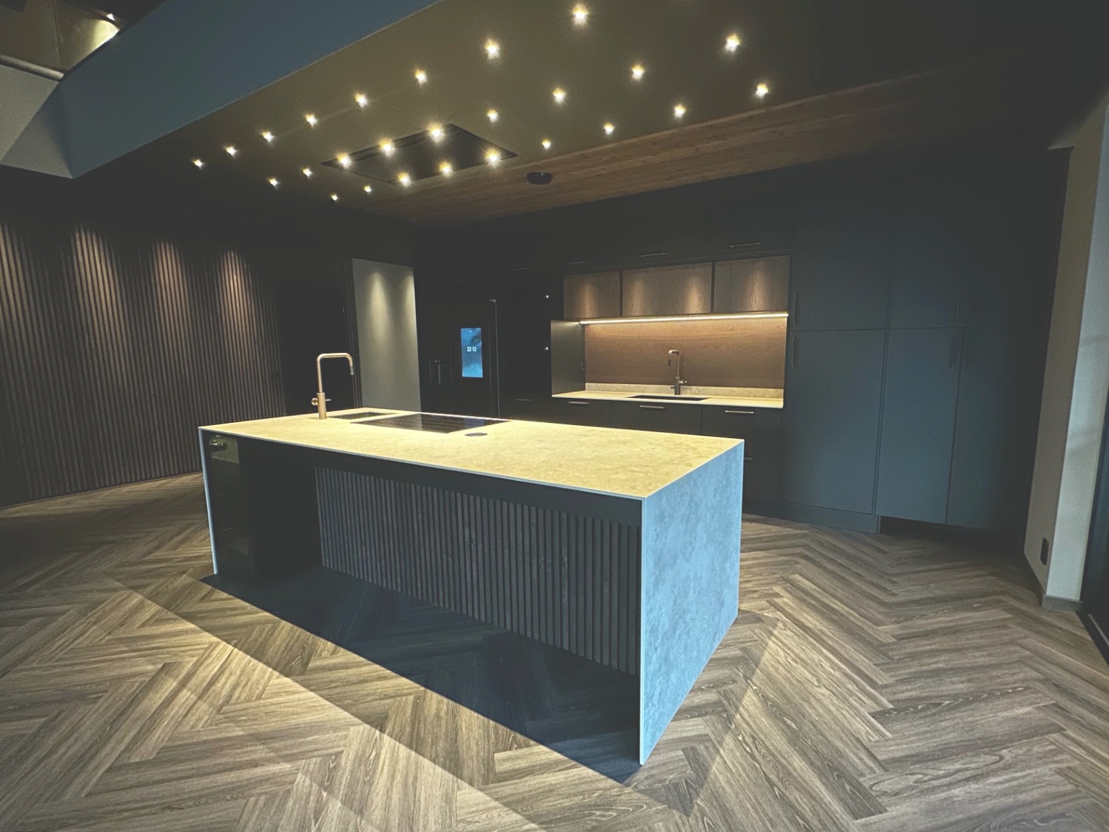 En slipad yta är också helt slät, men till skillnad från den polerade ytan har den en matt eller sidenmatt finish. Den reflekterar ljuset mjukt och diffust, vilket ger ett lugnare, mer dämpat och naturligt intryck. Slipade ytor är ofta mer förlåtande mot vardagligt slitage; fingeravtryck, damm och mindre repor tenderar att synas mindre tydligt. Den upplevs generellt som lättare att underhålla än en polerad yta.