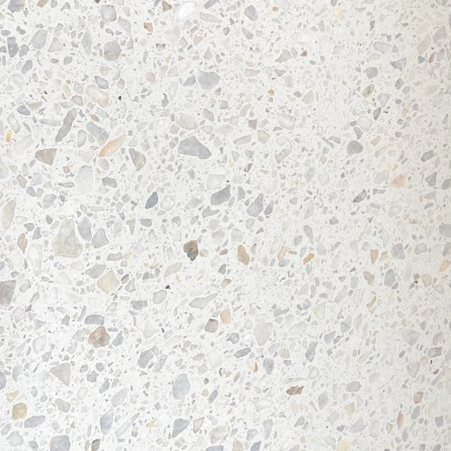 Terazzo Carrara 0/25 är en konstgjord sten, som innehåller flisor av vit marmor (Bianco Carrara C) med en storlek av 0-25 mm.