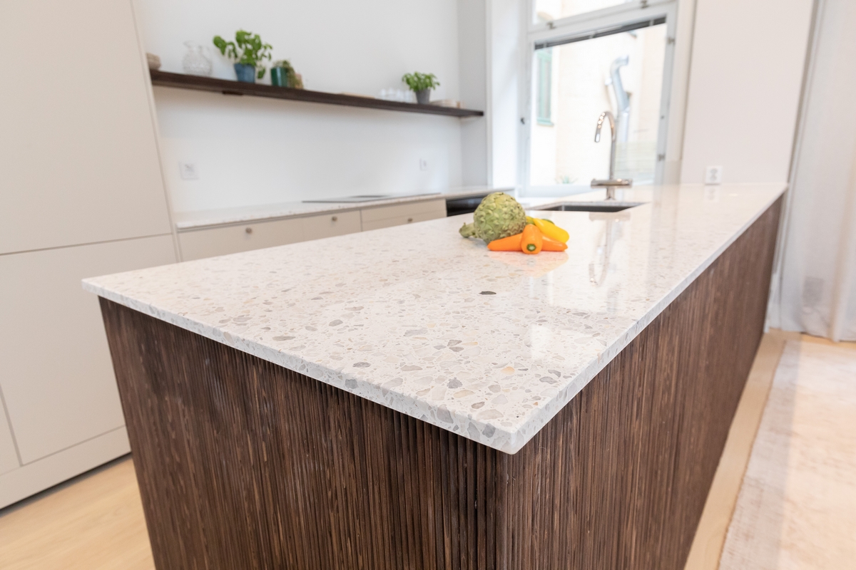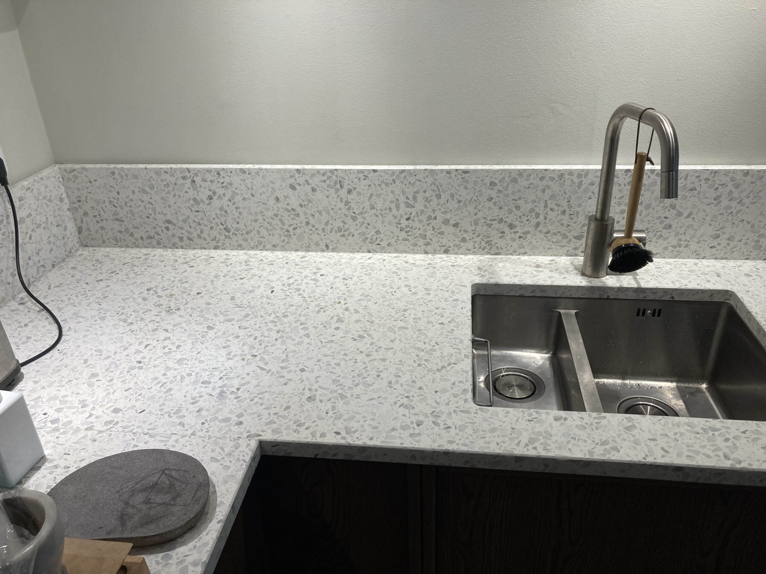 Terrazzomarmor har snabbt blivit ett populärt materialval för fönsterbrädor och trappor.