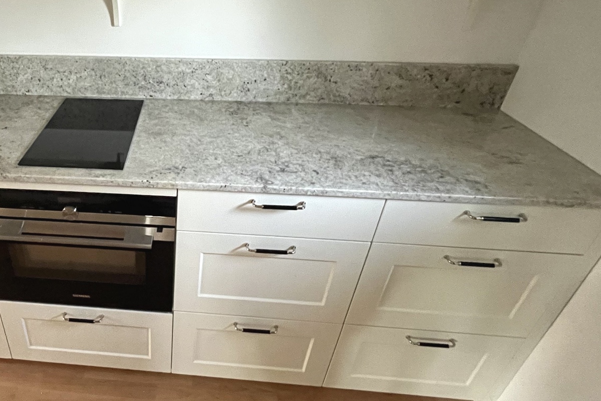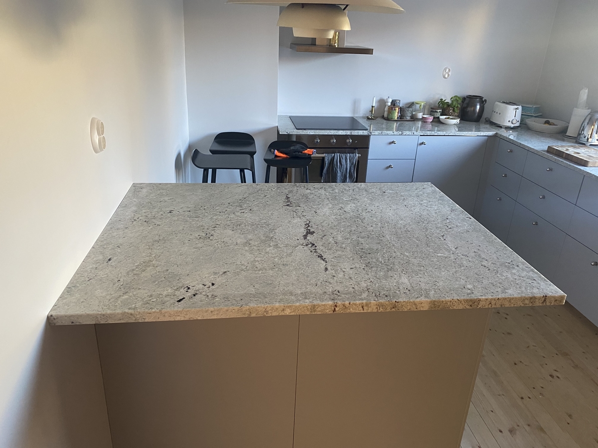 Colonial White är granit som bryts i Indien. Det är en grå sten med något kornigt mönster, som ju är kännetecknande för just granit. Den passar perfekt som bänkskiva i både kök och badrum, men även som spiselkrans och fönsterbänk.