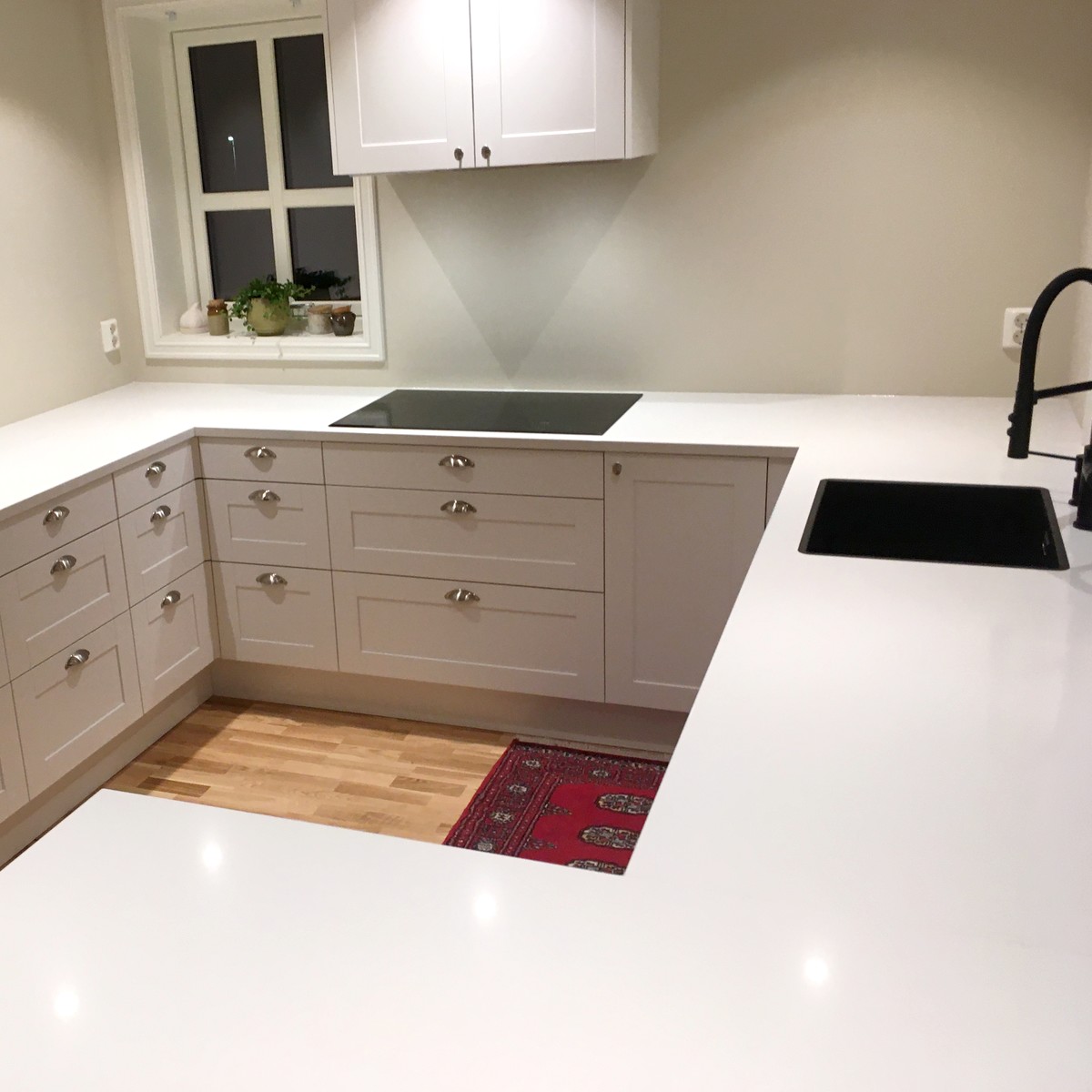 Crystal Polar White är en helt vit kompositsten. Mycket ljus kristallstrukturer och ren färg som utstrålar ljus. Perfekt för mörka rum som behöver en modern touch. Bänkskivor i Crystal Polar White blir mer och mer populära som en del av iögonfallande design.