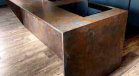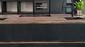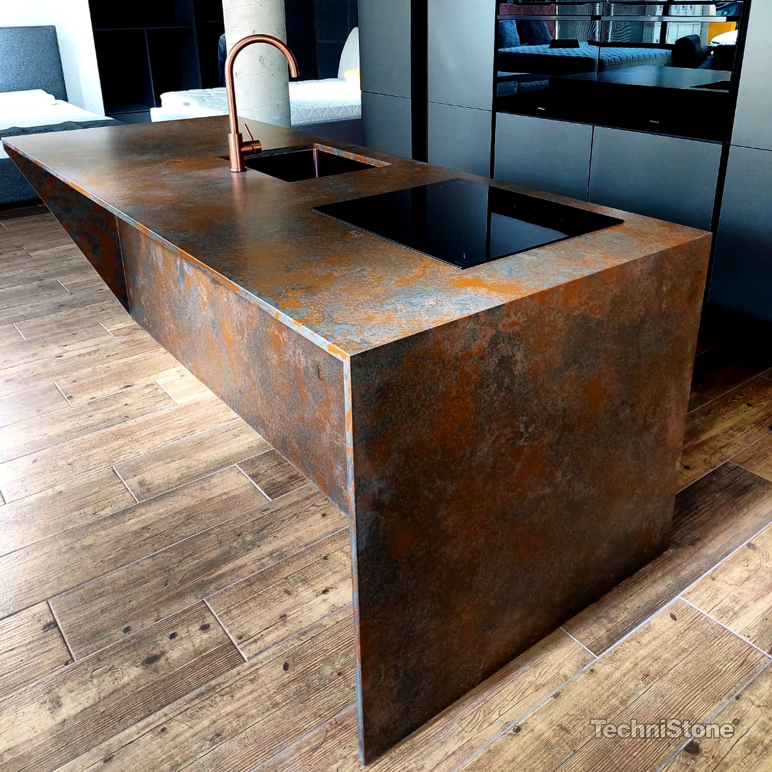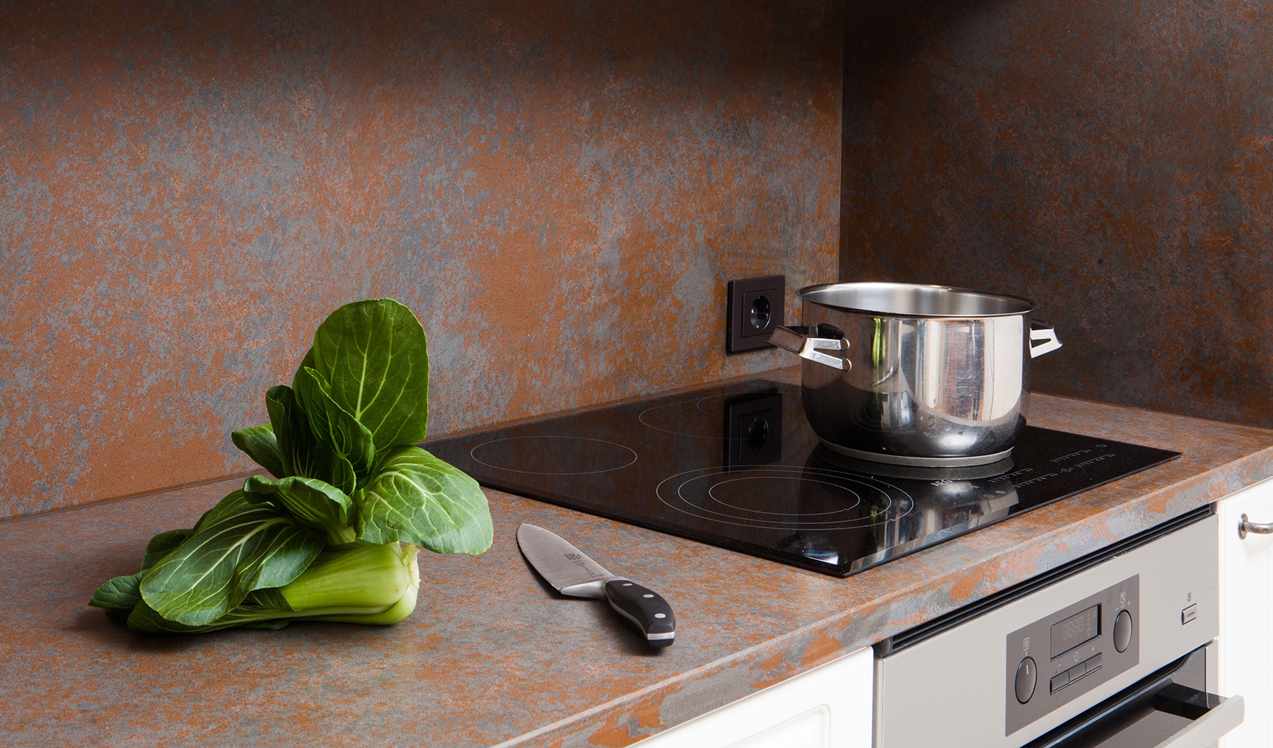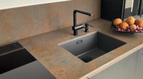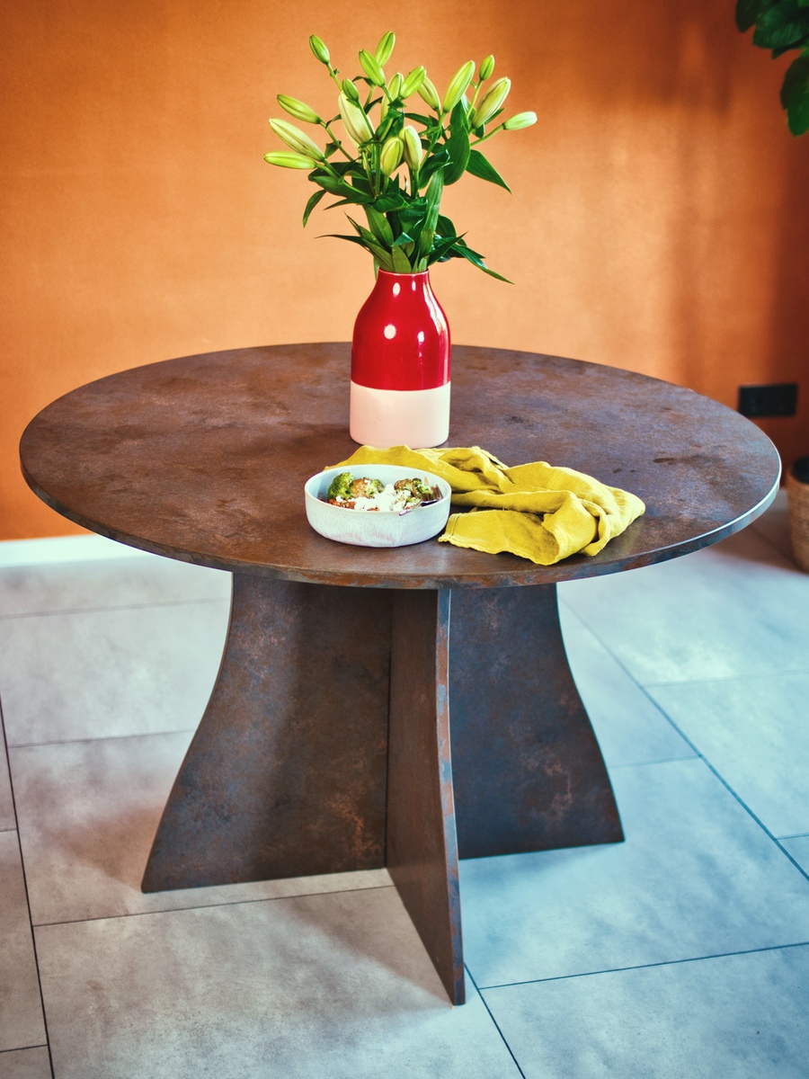 Decore Ocra är kvartsstenen i Trend-kollektionen och den har en särskiljande rostfärgad brunröd yta, s.k. Terra-finish.