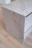 Dekton Entzo är en keramik, vars pärlvita bakgrund pryds av grå och gyllengula slingrande ådror. Keramikens yta inspirerade på den lyxiga Calacatta Gold marmor – kan man finna naturtrogna godtyckliga mönster och gyllene undersköna skimrande ådror. Således har resultatet blivit ett material som samtidigt har praktiska egenskaper och smutstålighet som ett keramiskt material, men även en värdighet och skönhet som naturlig marmor.