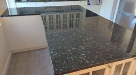 Emerald Pearl, även känd som Labrador Scuro, är en mörkgrön granit från Norge som skapar en märklig lek med färger när ljuset reflekteras på dess yta. Underbar mörkt grön-svart sten med fingertoppsstora stänk i allt från grön-guld till påfågelblå. De exotiska färgskimrande kristallerna är fantastiska tillsammans med lyxig inredning och design, vilket gör Emerald Pearl lämplig i kök, badrum och sovrum. Tack vare storleken på stänken syns inte fingeravtryck eller andra fläckar.