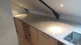 Terrazzomarmor har snabbt blivit ett populärt materialval för fönsterbrädor och trappor.