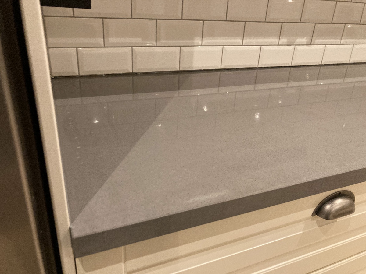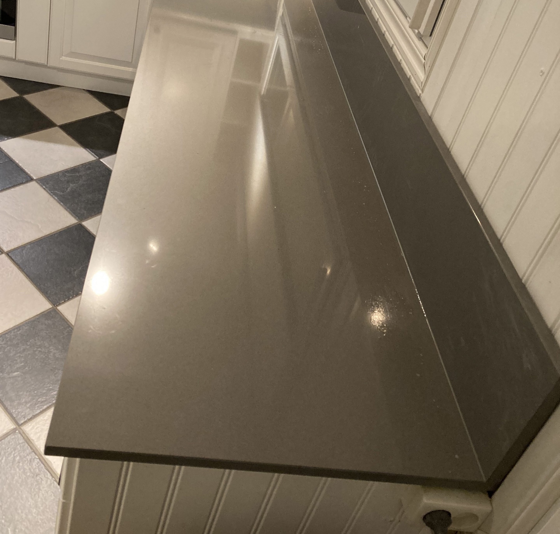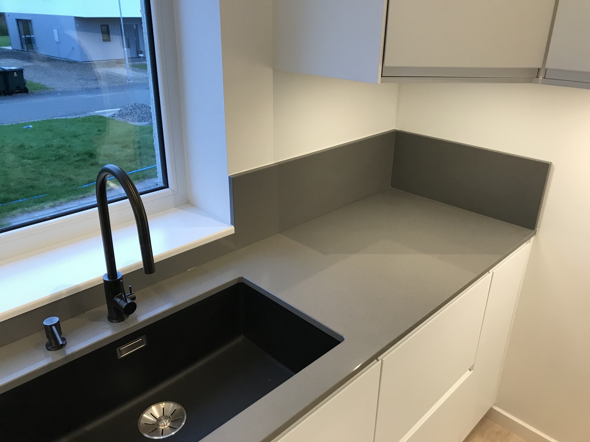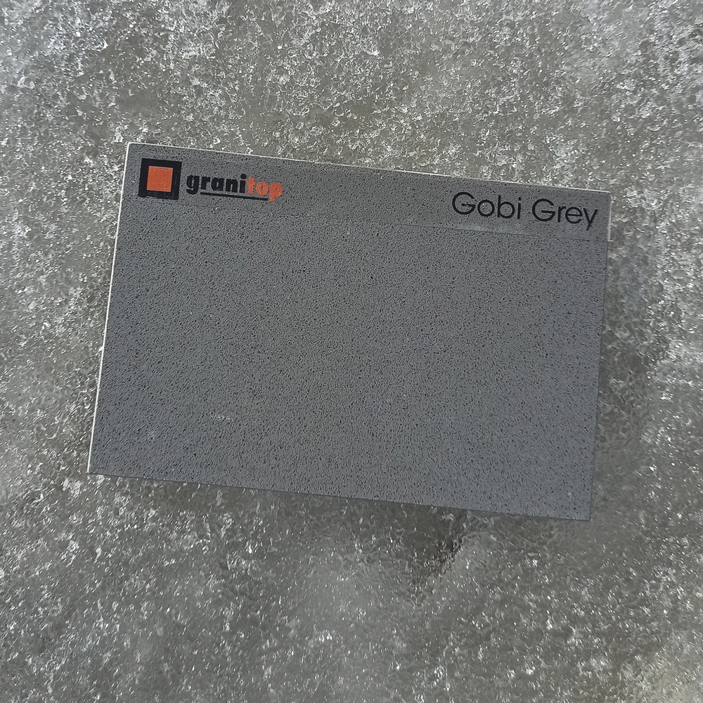 Bänkskivan på Gobi Grey är en grå massa av små kvartskristaller som ger harmoni till platser där du vill använda stenskivor men inte dra uppmärksamheten från allt annat.