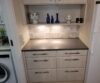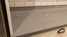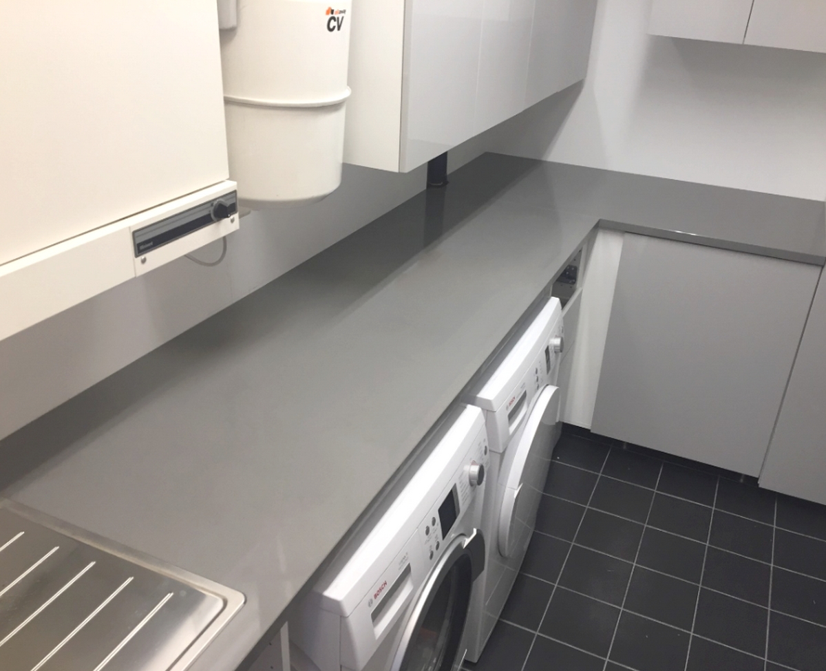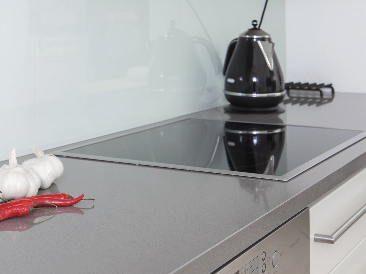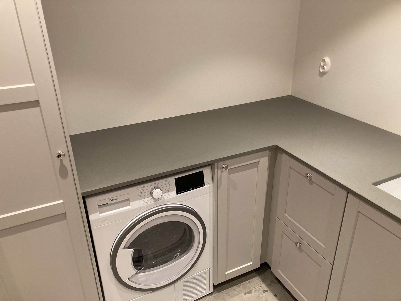 Bänkskivan på Gobi Grey är en grå massa av små kvartskristaller som ger harmoni till platser där du vill använda stenskivor men inte dra uppmärksamheten från allt annat.
