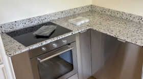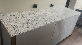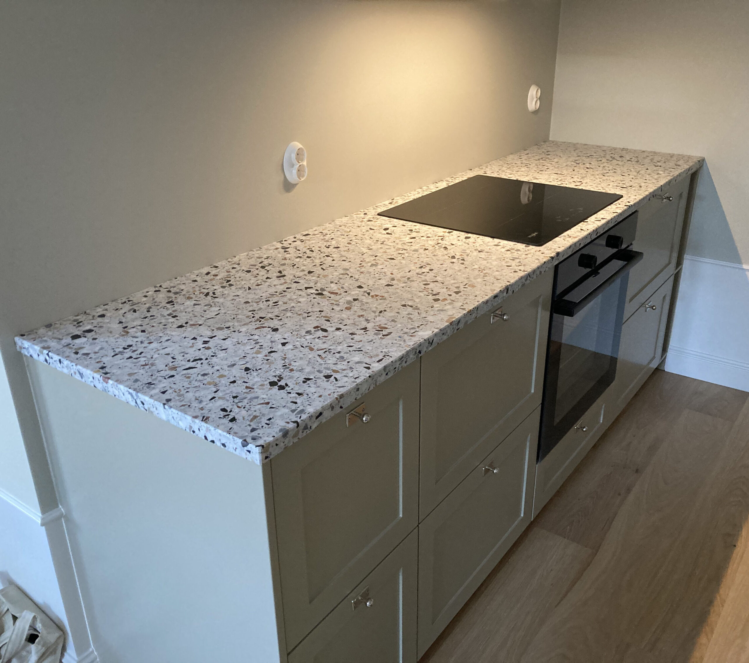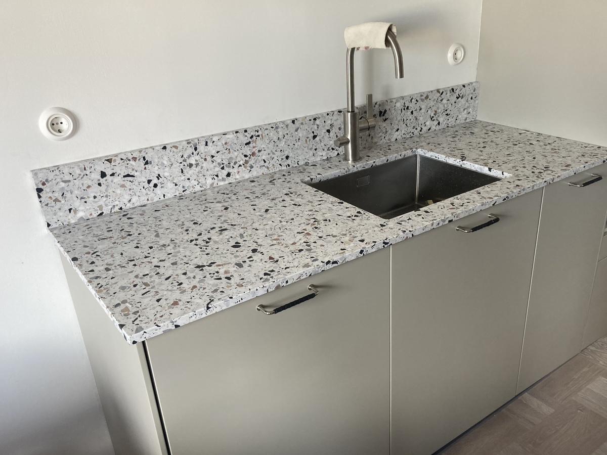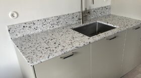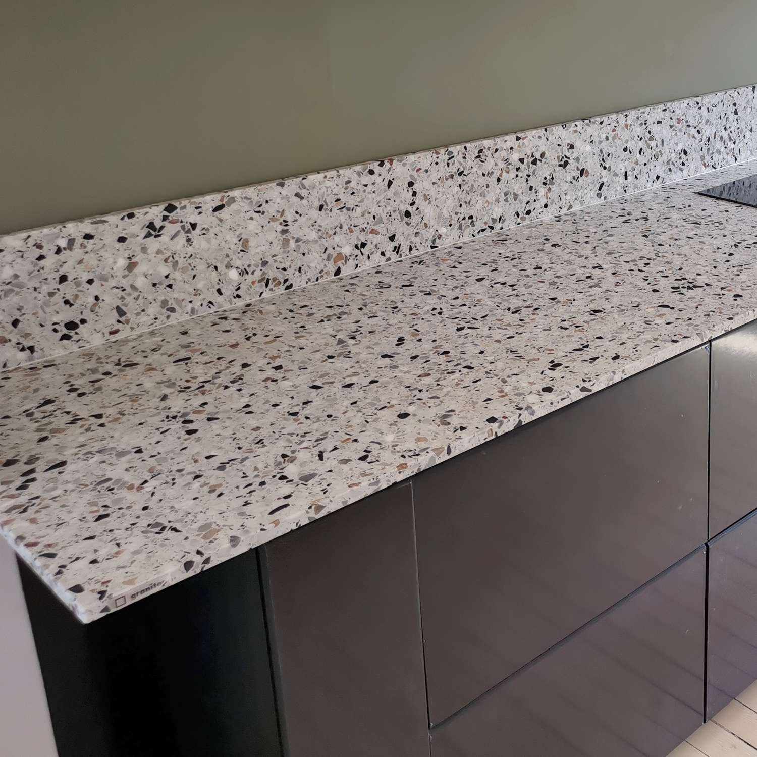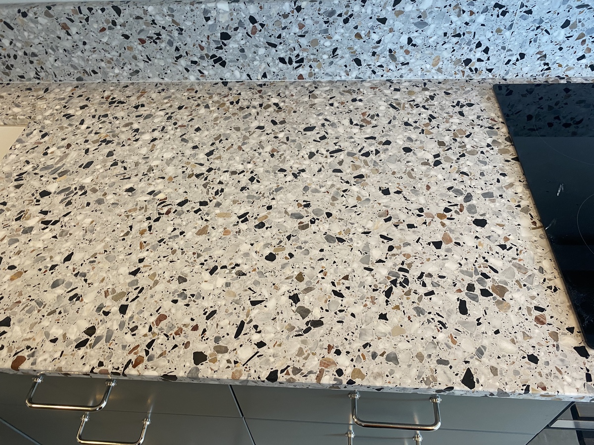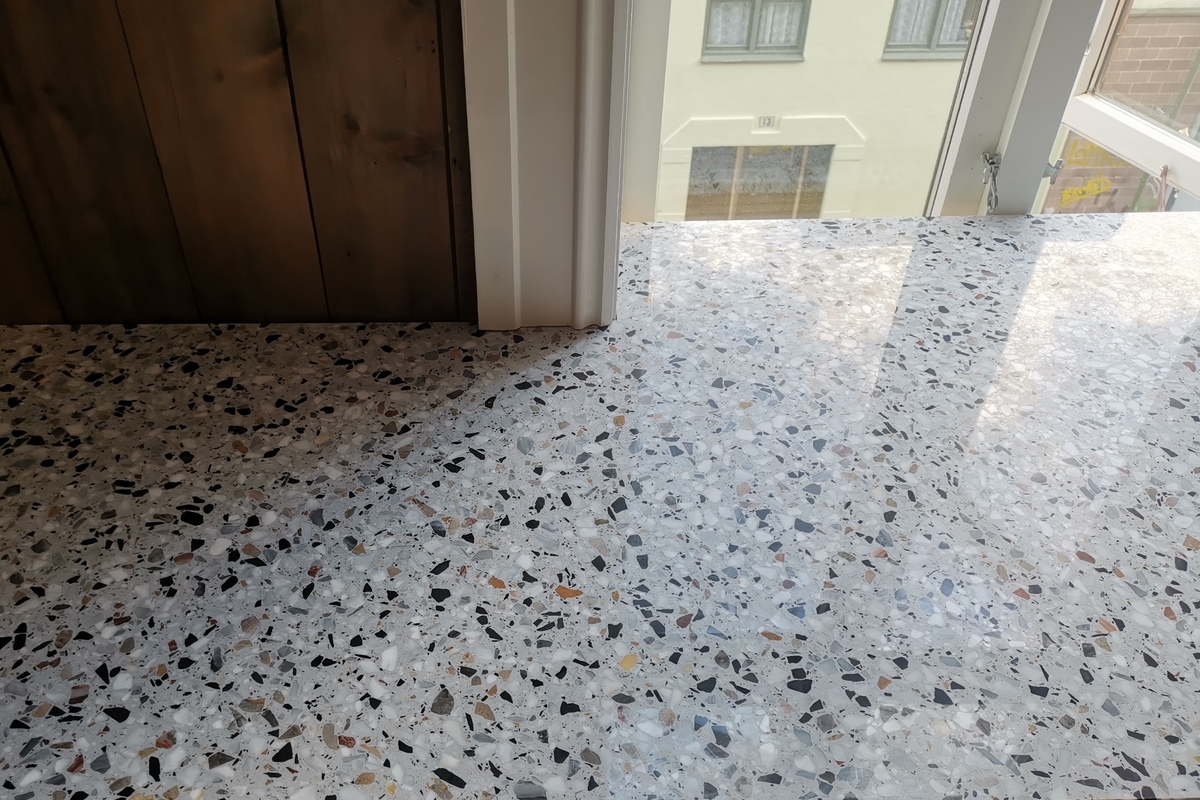 Terrazzomarmor har snabbt blivit ett populärt materialval för fönsterbrädor och trappor.