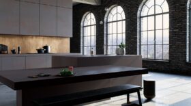Oxidian (Rough) är en gråbrun kvarts i den av industridesign präglade Metropolitan-kollektionen. Dess bläckfärgade mörka bakgrund får en dramatisk rostfärgad effekt.