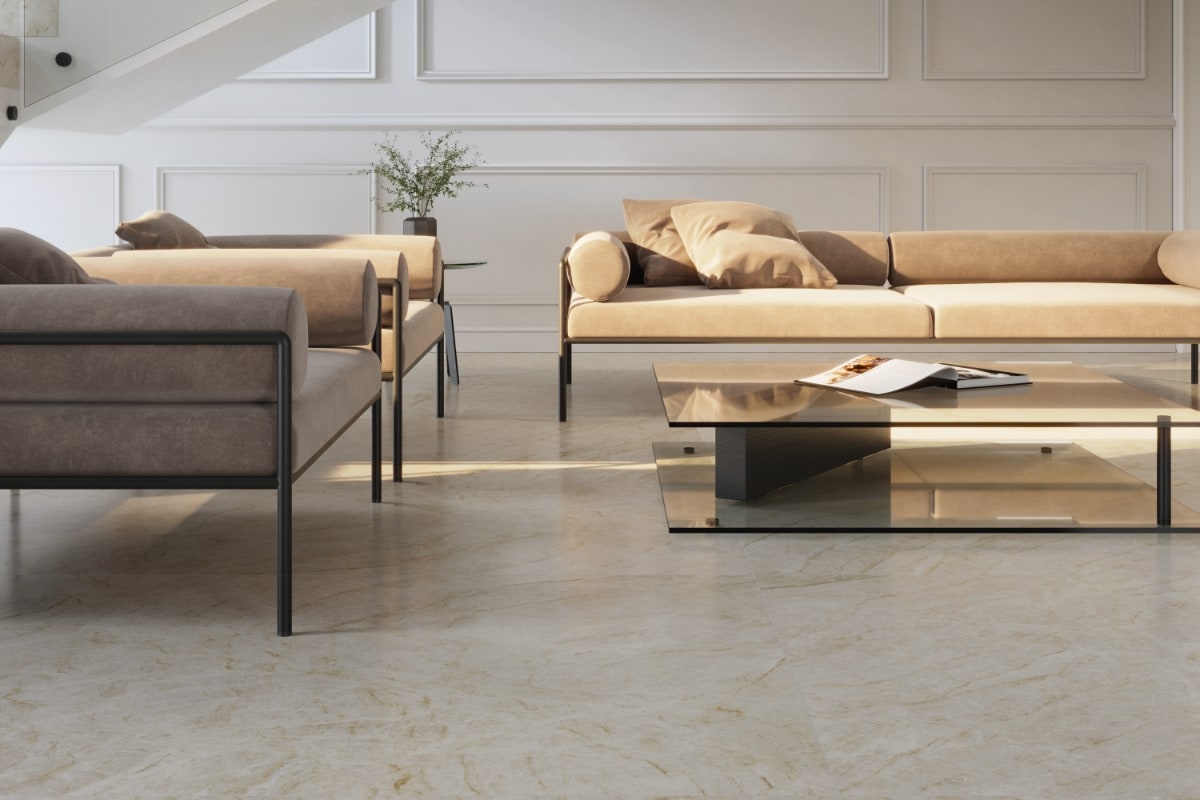 En slipad yta är också helt slät, men till skillnad från den polerade ytan har den en matt eller sidenmatt finish. Den reflekterar ljuset mjukt och diffust, vilket ger ett lugnare, mer dämpat och naturligt intryck. Slipade ytor är ofta mer förlåtande mot vardagligt slitage; fingeravtryck, damm och mindre repor tenderar att synas mindre tydligt. Den upplevs generellt som lättare att underhålla än en polerad yta.