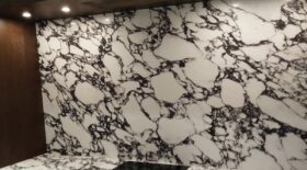 Porcelanosa Viola Blue är en keramik, som har inspirerats av den lyxiga Arabescato Vagli–marmorn. Dess gråblå storslaget eleganta mönster harmonierar väl med materialets krämvita grundton. Vi har ett utmärkt material som kan användas vid projektering av såväl kök, badrum som bostadsrum.