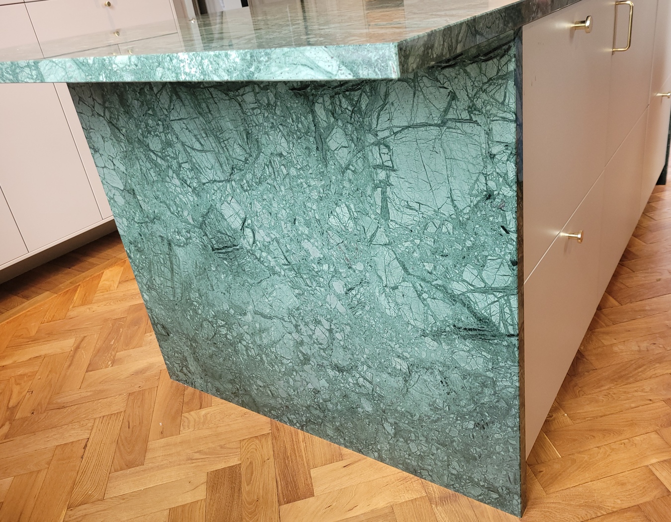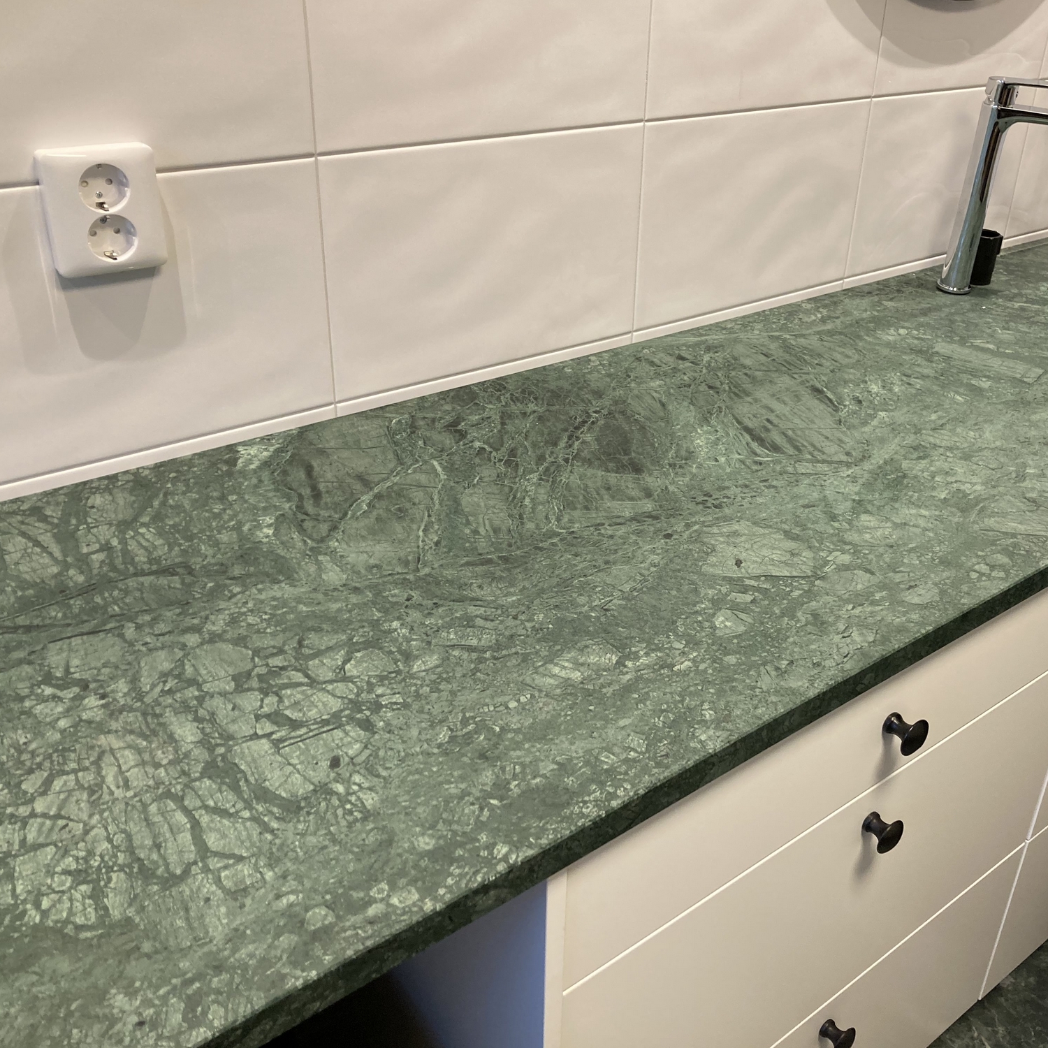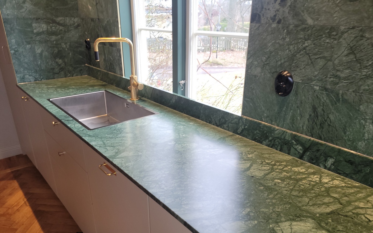 Verde Guatemala kommer att ge skönhet till varje rum men rekommenderas inte i kök på grund av att den är mycket porös och lätt att repa. Den är mer passande för visuell njutning än praktisk användning.