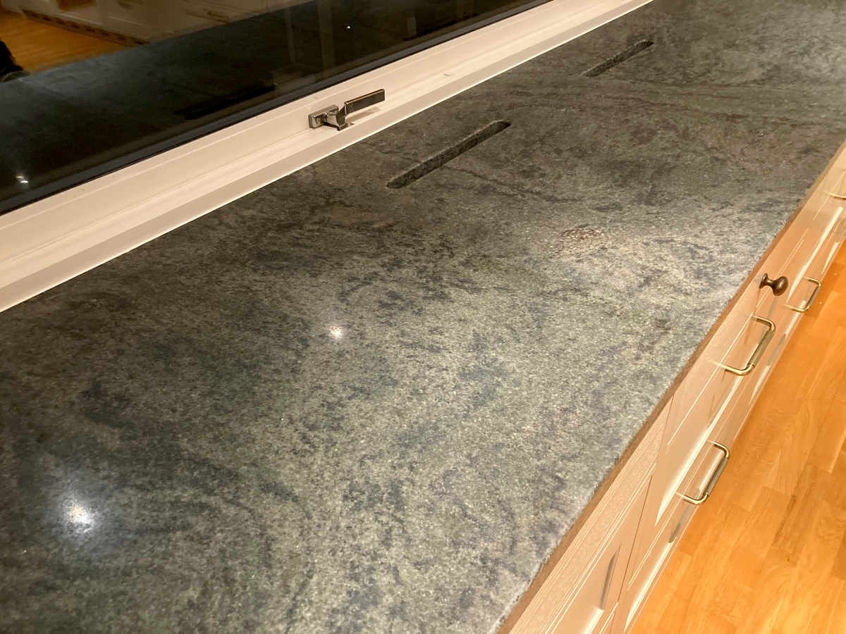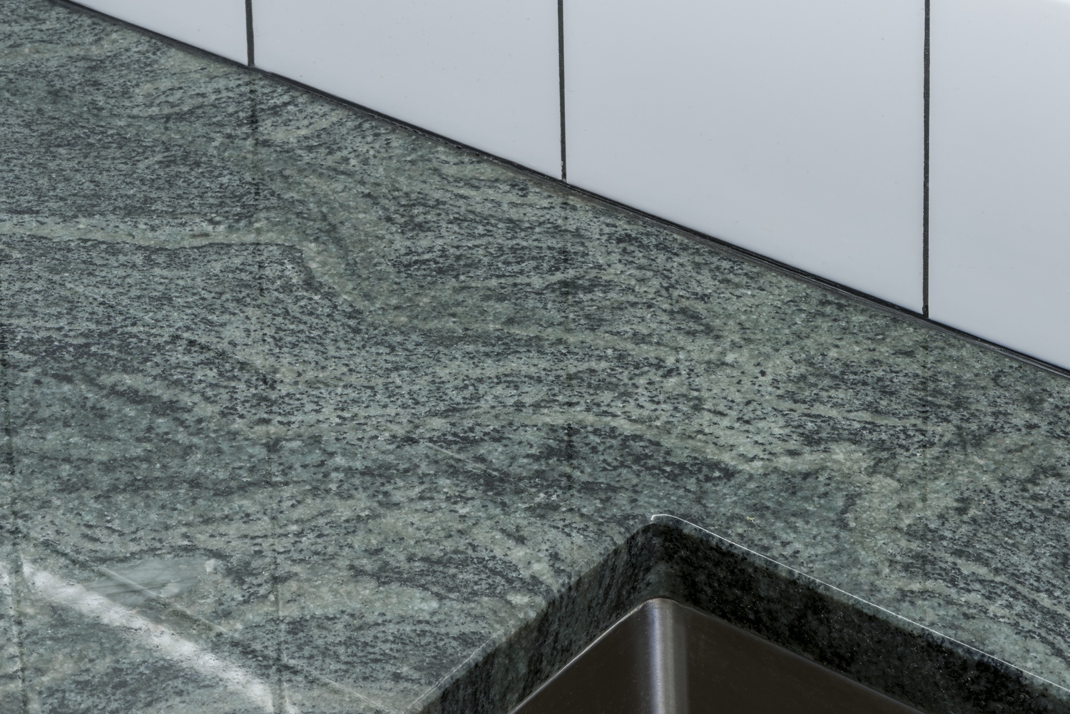 Verde Savana är grön brasiliansk granit med sprudlande mönster.