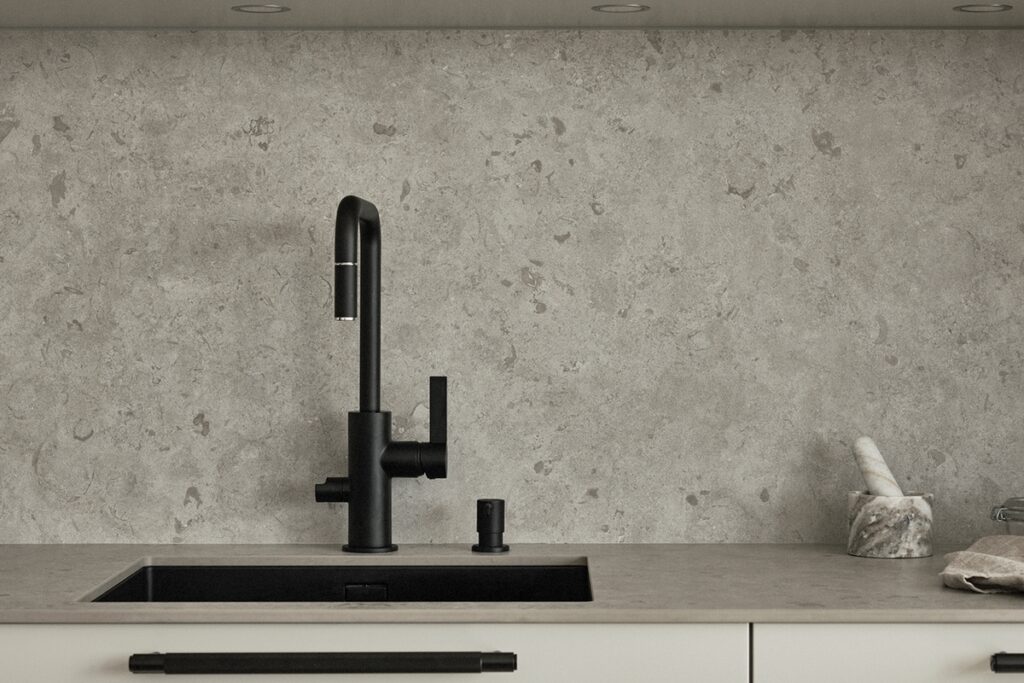 - Integrerade stänkskydd i samma material som skapar en sömlös, elegant look