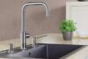 Urvalet av blandare inkluderar duschhuvud (bokstaven S i produktnamnet), blandare som kan sänkas ner i bänkskivan (F) och blandare med diskmaskinskran (A). För ett ännu mer elegant resultat föreslår vi tvålpumpar som integreras i bänkskivan och som kan användas för lagring av diskmedel eller flytande tvål.