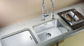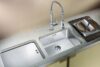 Urvalet av blandare inkluderar duschhuvud (bokstaven S i produktnamnet), blandare som kan sänkas ner i bänkskivan (F) och blandare med diskmaskinskran (A). För ett ännu mer elegant resultat föreslår vi tvålpumpar som integreras i bänkskivan och som kan användas för lagring av diskmedel eller flytande tvål.