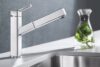 Urvalet av blandare inkluderar duschhuvud (bokstaven S i produktnamnet), blandare som kan sänkas ner i bänkskivan (F) och blandare med diskmaskinskran (A). För ett ännu mer elegant resultat föreslår vi tvålpumpar som integreras i bänkskivan och som kan användas för lagring av diskmedel eller flytande tvål.